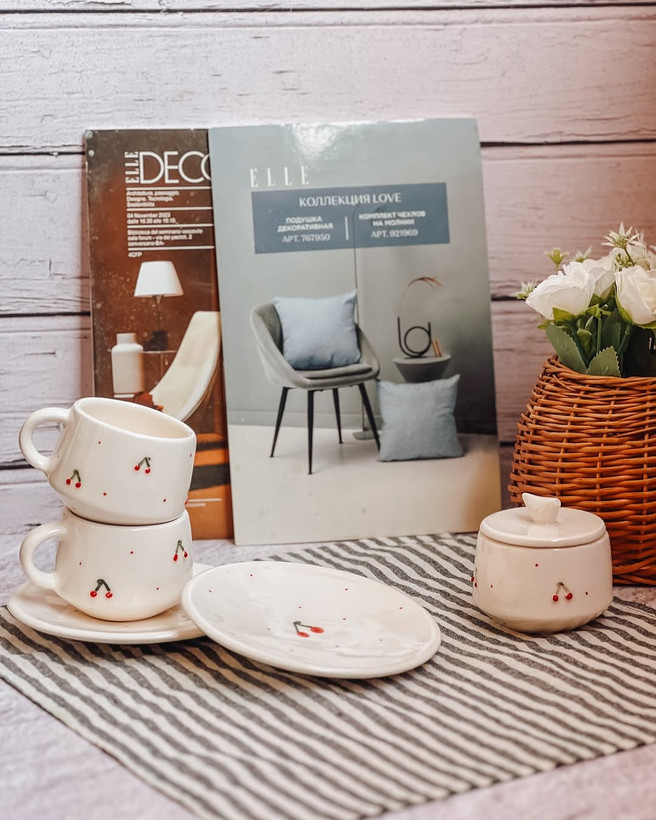 چون علاقه شدیدی به گیلاس دارید براتون ست قشنگ فنجون و نعلبکیشو اوردم اینقدر این کار دلبر و جذابهه که هرکسی ببینش عاشقش میشه در عین برجستگیش ساده و مینیمالم هست