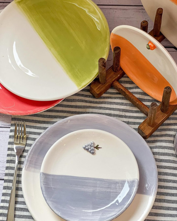 میتونم به جرات بگم از قشنگ ترین ست های بشقاب غذا خوری و پیشدستی همینه ترکیب رنگش در عین سادگی و مینیمال بودن واقعا دلبر و جذابه و به نظرم از سری ترکیباتیه که هر کسی عاشقش میشه و بی نهایت به میز پذیراییتون رنگ و جلوه قشنگی میبخشه