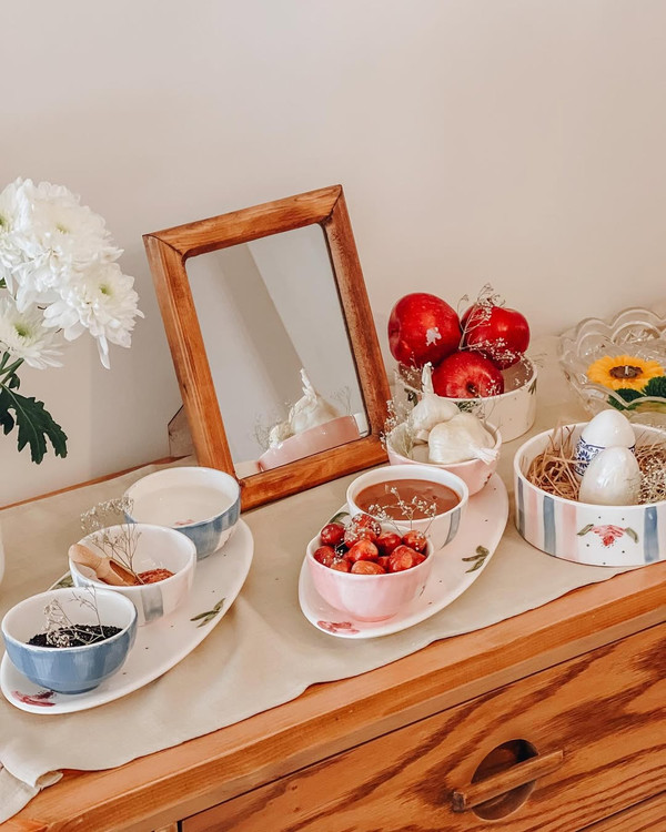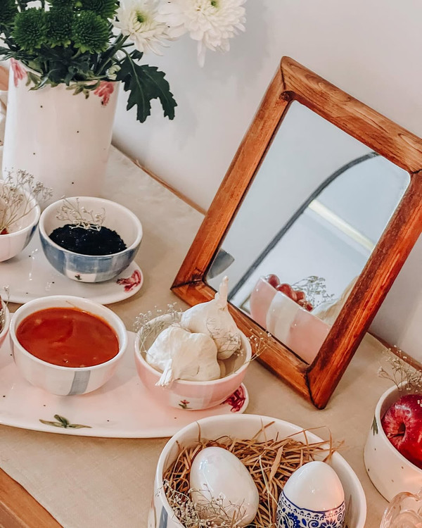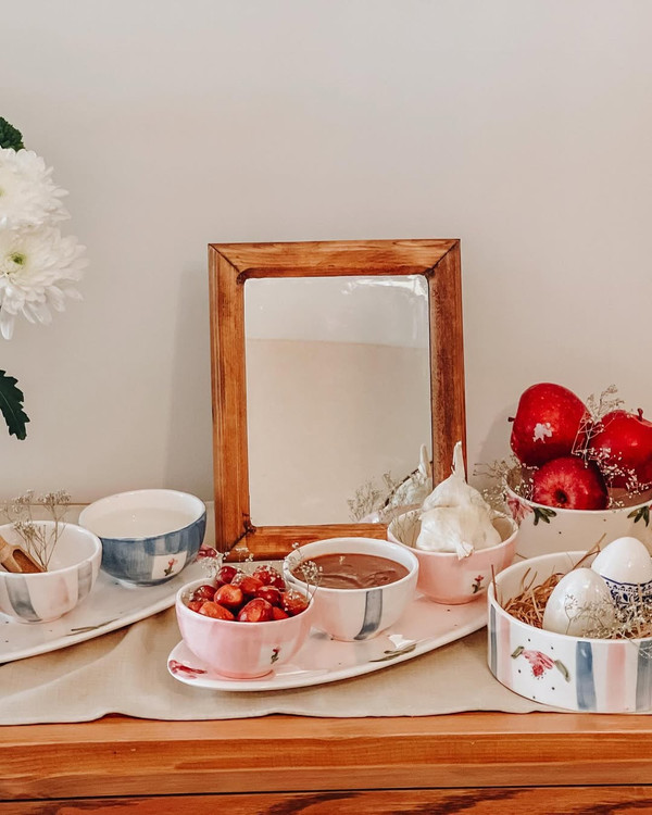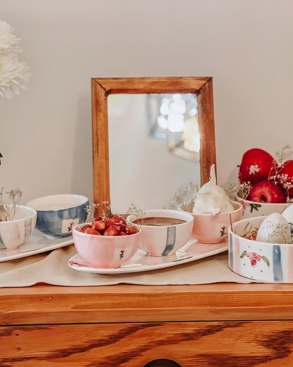 و با آخرین هفت سین امسال به استقبال بهار میریم بهار همیشه زیبایی رو مهمون خونه و زندگیمون میکنه و چقدر خوشحالم که امسال بخشی از این زیبایی رو من تقدیمتون کردم و این اخرین هفت سین سال 1402 بود و ممنونم که که همراه من و پیجم هستید و از همین جا میگم وجودتون نعمته و وسط قلبیمید هفت سین جنس : سرامیکی ست که شامل : آینه ، گلدون ، ۲ عدد دیس ، ۶ عدد پیاله و ۲ عدد کاسه بزرگ و متوسط