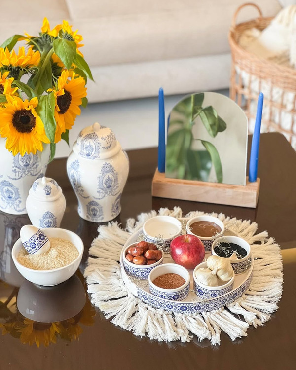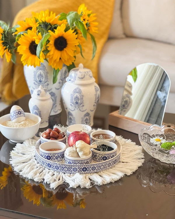 بوی بهار رو میشه از وسط زمستون و حتی همین برف و سرمام حس کرد و چقدر خوبه که کنار قشنگ ترین هفت سین سالمون رو نو کنیم و بریم به استفبال بهار زیبا هفت سین جنس : سرامیکی ست که : آینه ، ۶ عدد کاسه و سینی