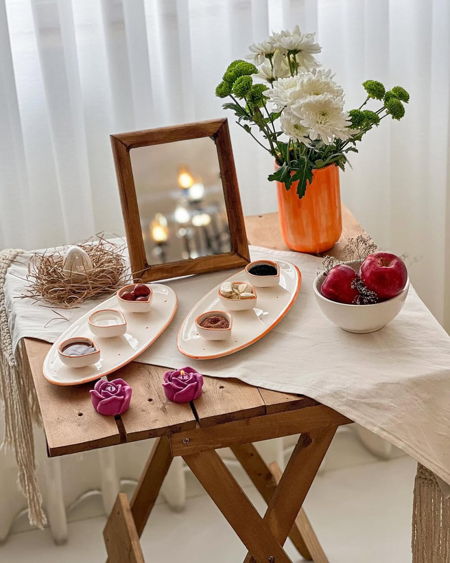 دومین هفت سین امسال در عین مینیمال بودنش خیلی دلبر و خاصه ست قشنگم رنگ ساله و ظروفش کاملا مصرفیه و میتونید بعد از عیدم ازشون استفاده کنید و من خودم عاشق همین حس دلبرش شدم چون بی نهایت قشنگ و خاصه