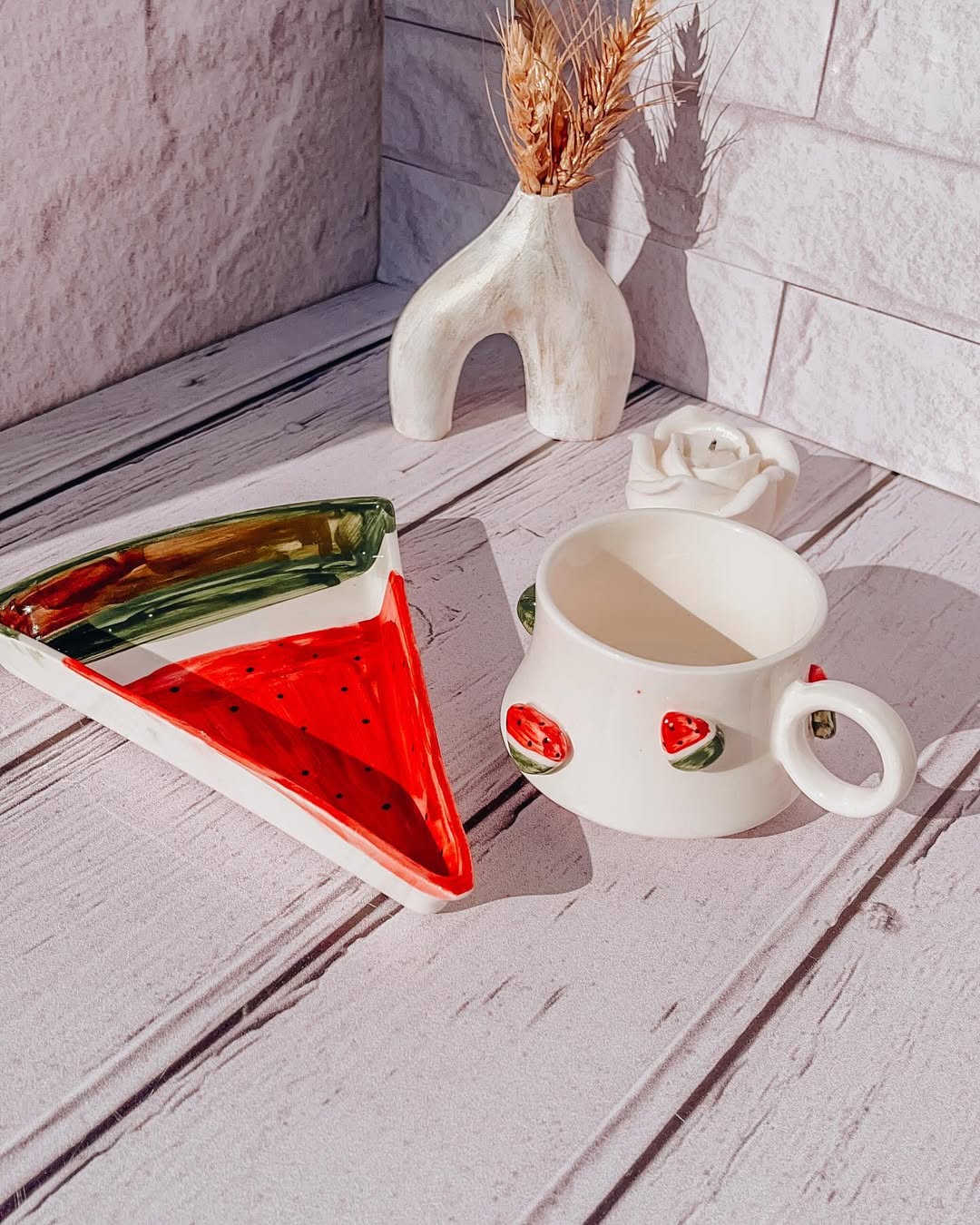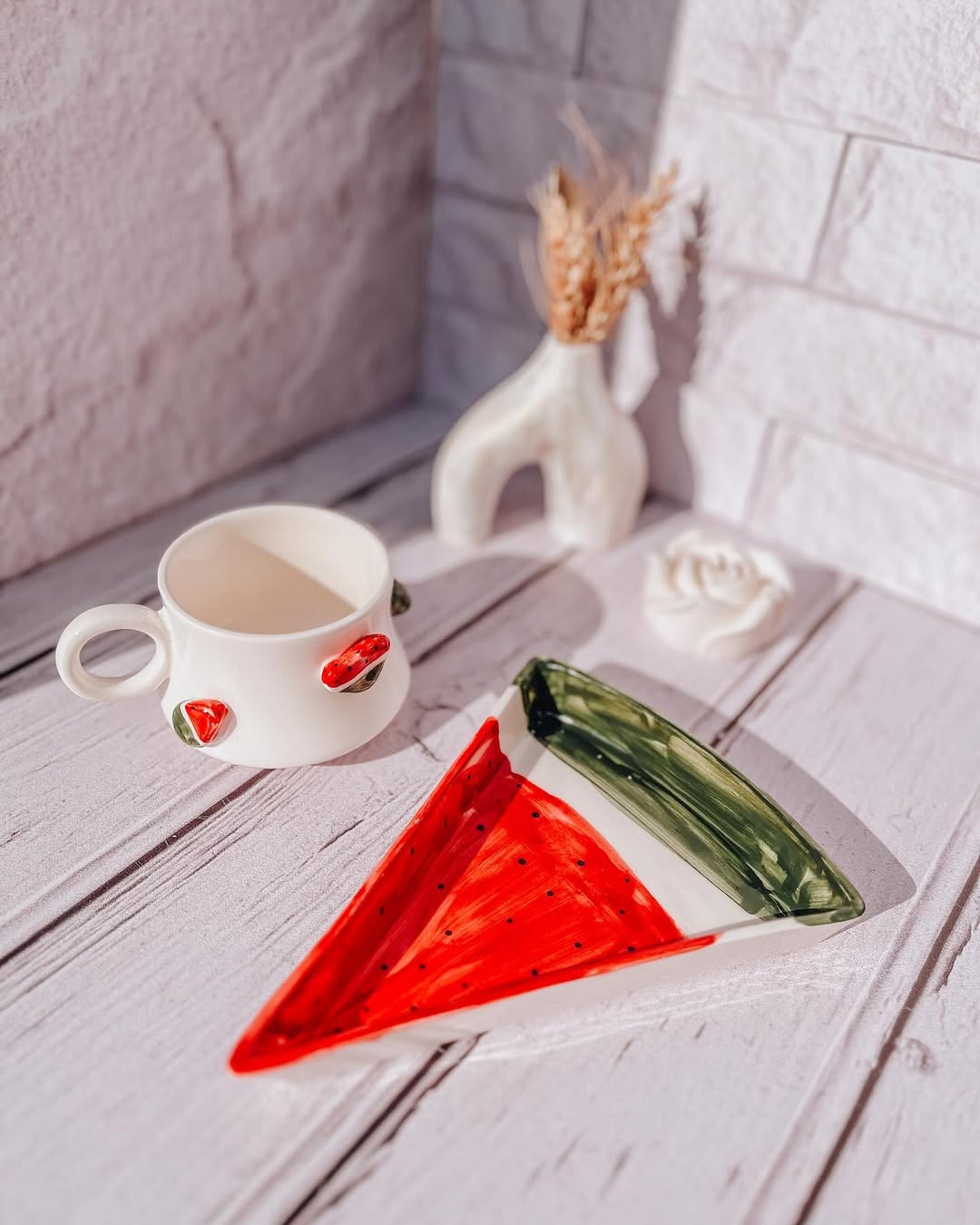 گفتم یه وقت زشت نباشه من پست یلدایی نذارم اینم از ست هندونه قشنگم که خودم عاشق ترکیب رنگ قرمز با سبزش شدم
