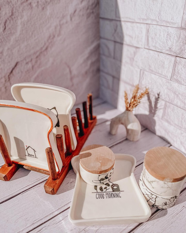 ظرفای دلبرمون که واقعا صبحانن خوردن توش خیلی میچسبه ظرف نون تست و کاسه های کوچیک که میتونید ستش کنید برای صبحانه و بذت ببرید