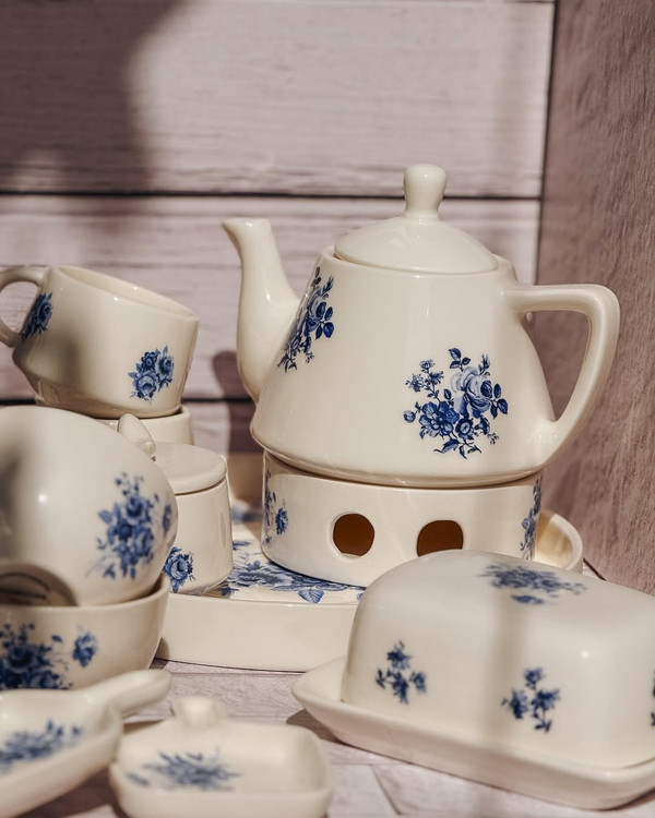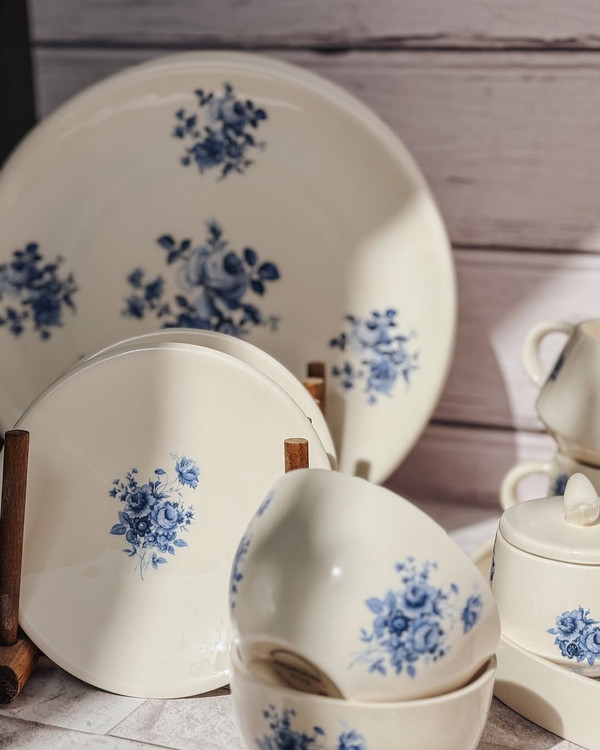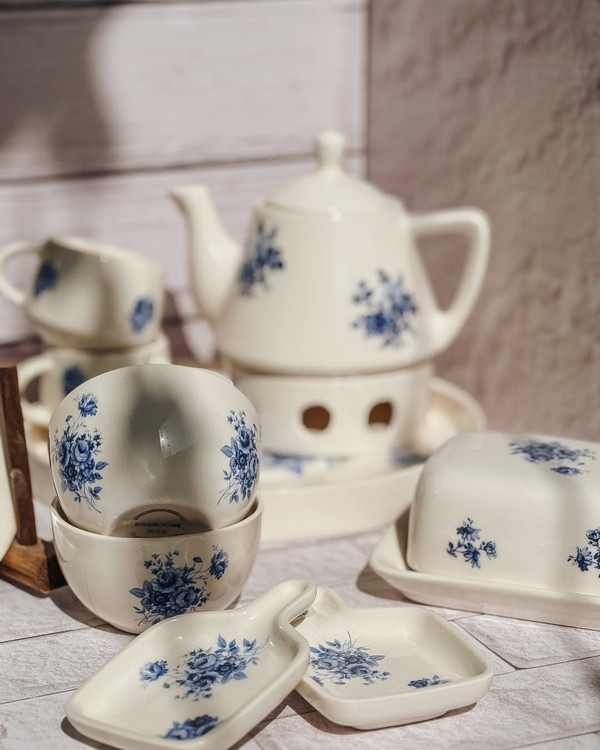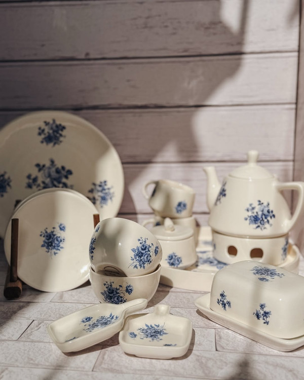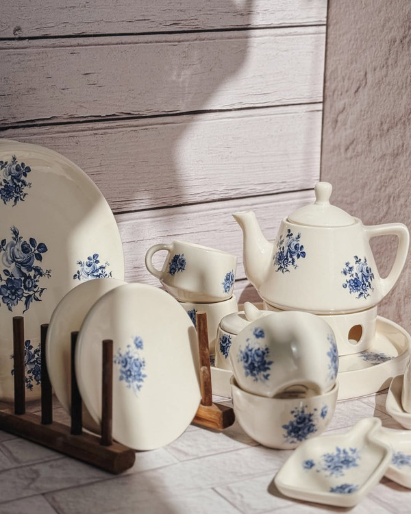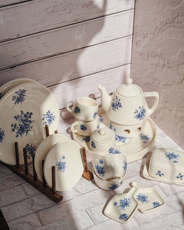 سرویس صبحانهخوری طرح گلآبی برای وقتایی که دلت یه صبح متفاوت میخواد… یه ترکیب ساده و اصیل برای میزهای دونفره یا یهنفرههای خاص