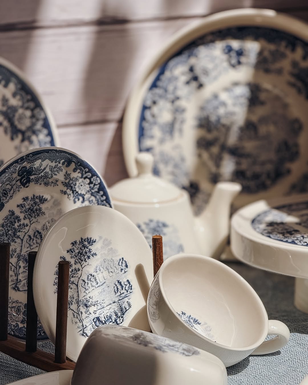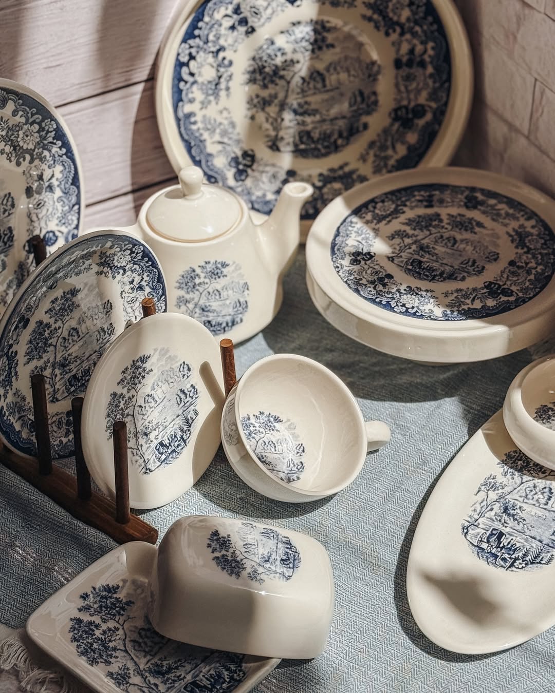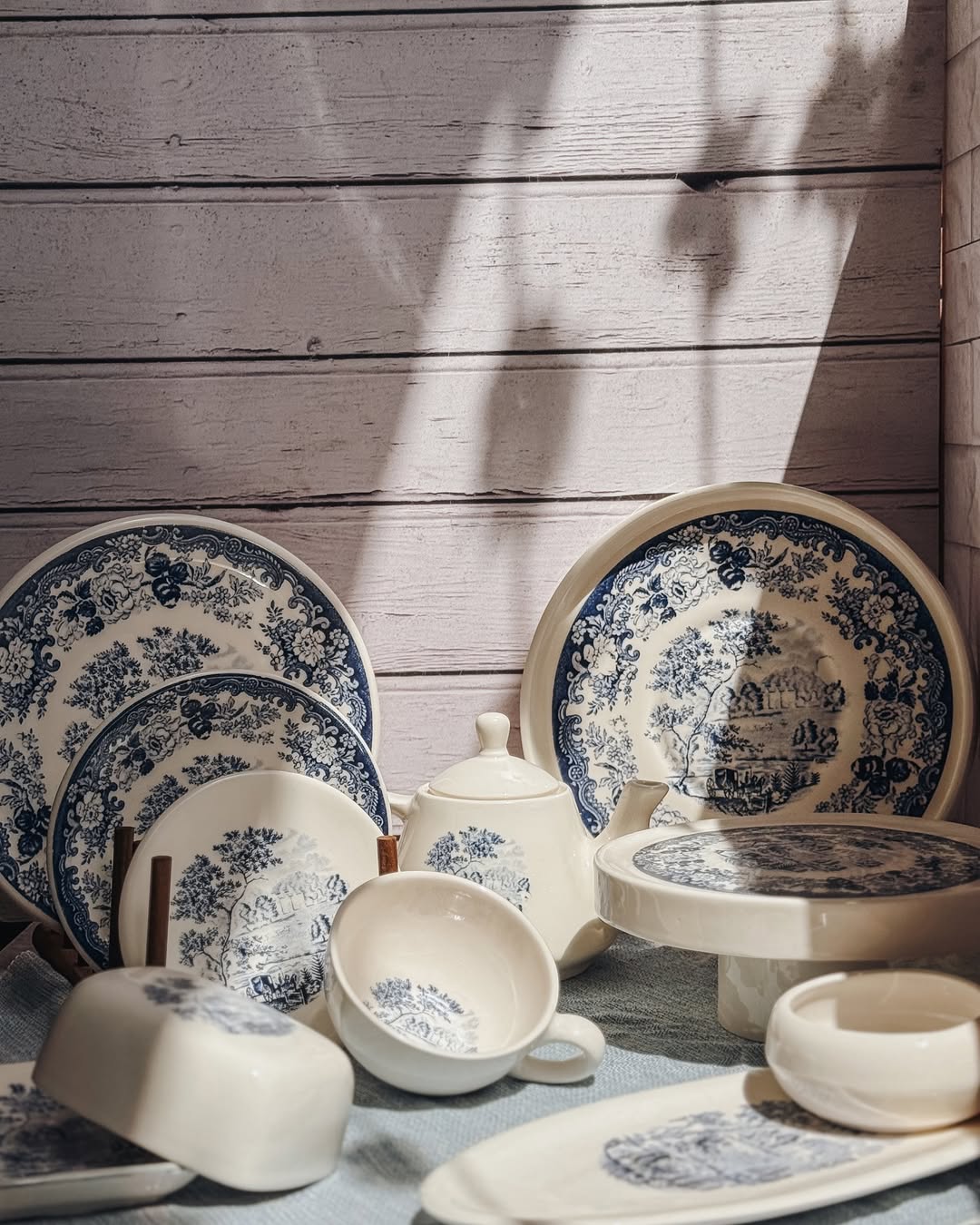یه ست خاص با نقشونگارهای کلاسیک آبیسفید برای کسایی که دنبال ظرفایی با حس و حال اصیل و متفاوتن… انگار این ظرفا از دل یه داستان قدیمی اومدن… پر از خاطره، پر از عشق، پر از حس خوب خونهی مامان بزرگا