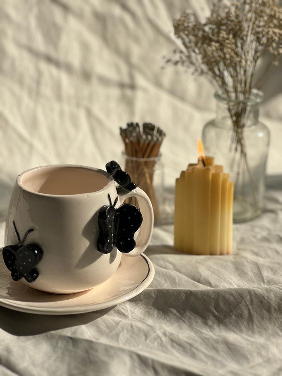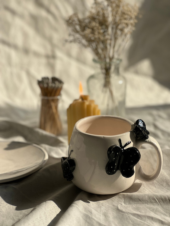 ماگ پروانه سرامیکی برجسنه و دستساز