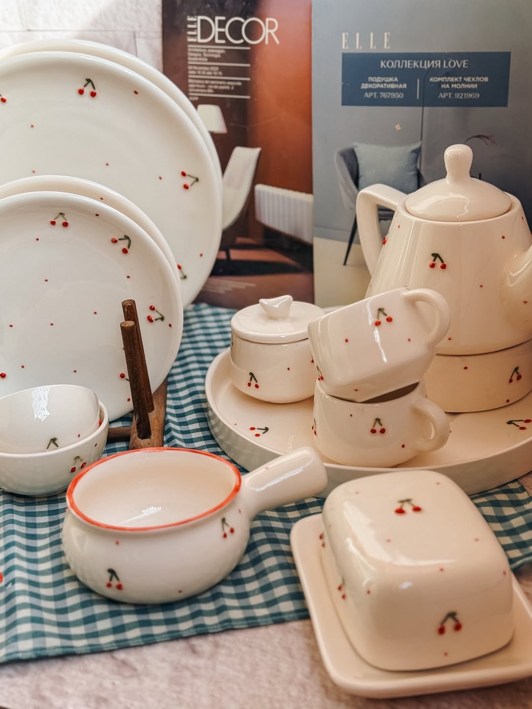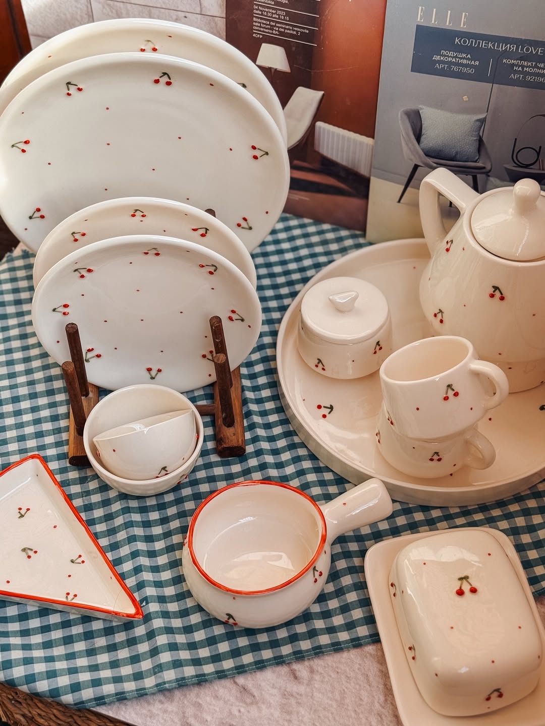 یه سرویس ساده و دوستداشتنی با طرح گیلاس، برای اونایی که دنبال حس خونه و آرامش توی جزئیاتن هر تیکهاش با عشق ساخته شده تا میز صبحونهتون یه لبخند کوچیک اضافهتر داشته باشه