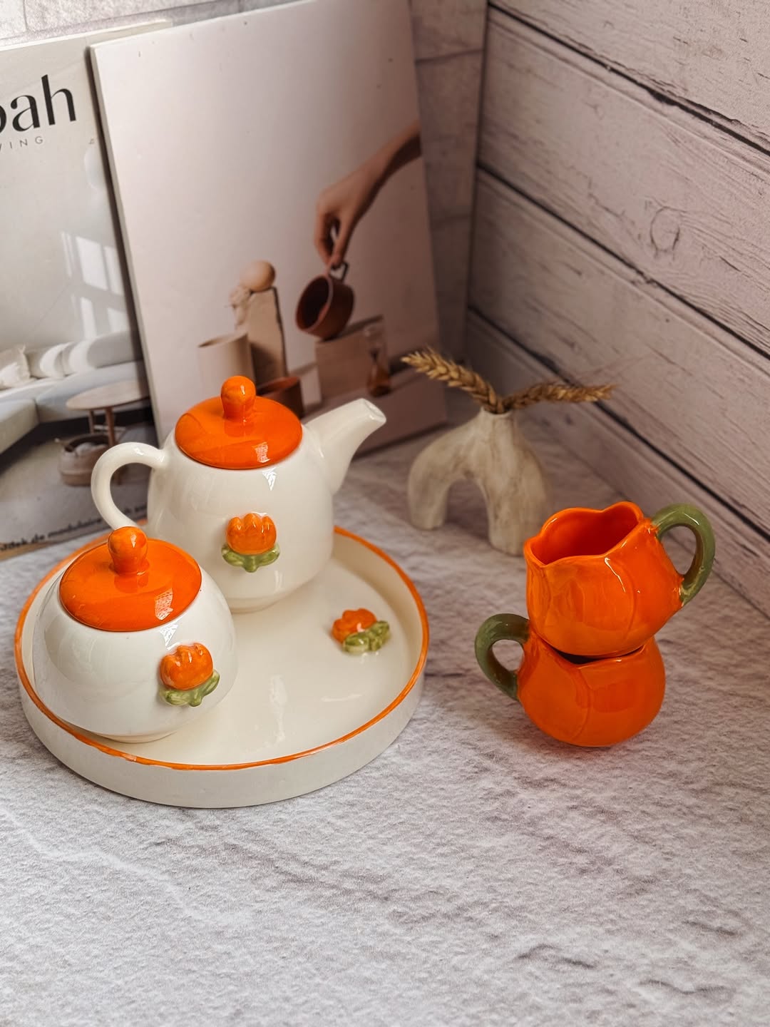 ست گل لاله نارنجی که به هر فنجون چایی انرژی و گرما میبخشد و زیبایی پاییز را به جزئیات زندگی میآورد.