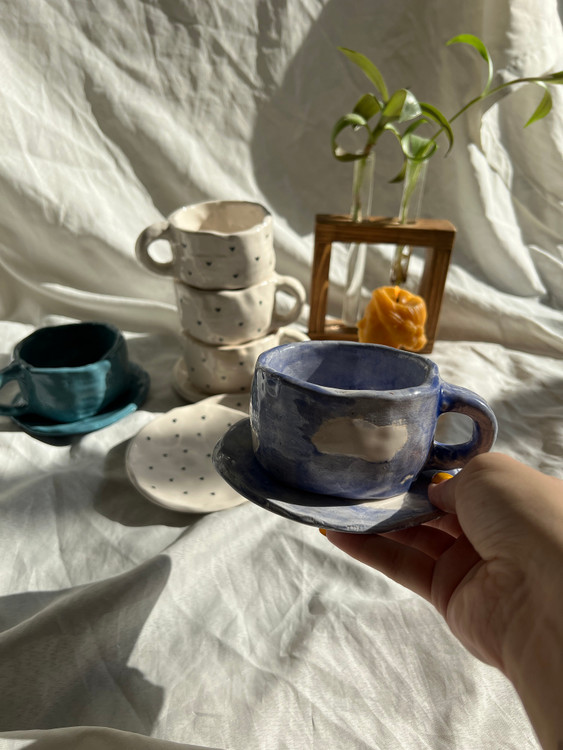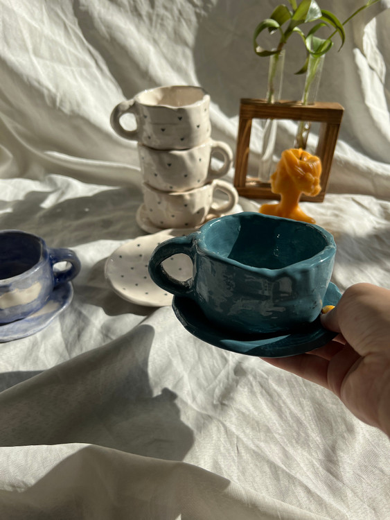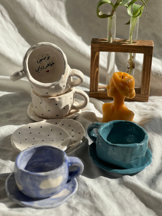 امکان اضافه کردن متن و طرح روی ماگ و نعلبکی و قابل سفارش در هر رنگی