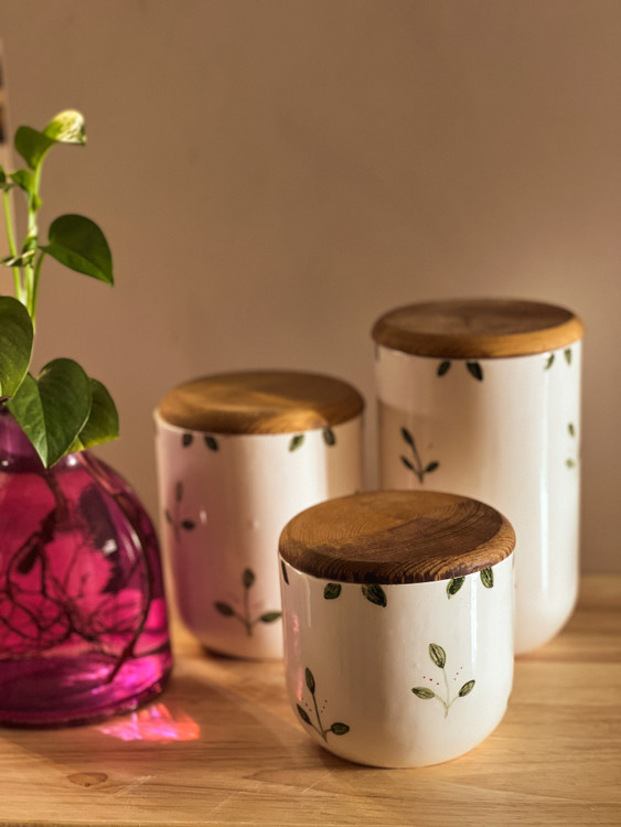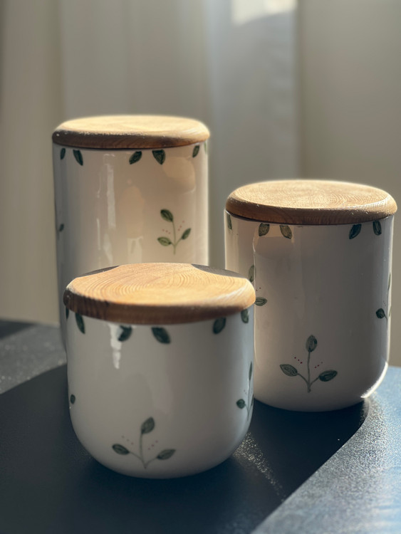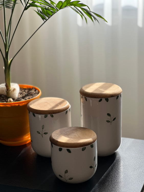 ست بانکه سرامیکی با درب چوبی و دستساز