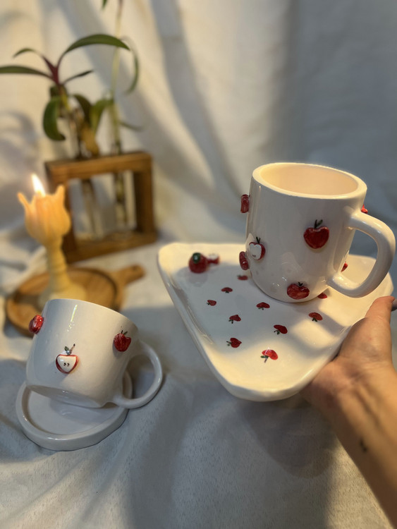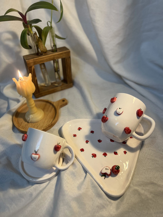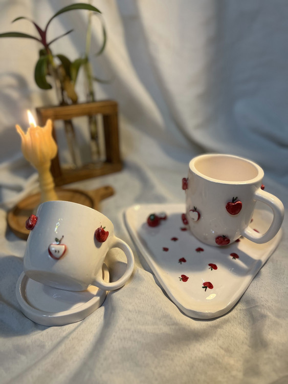 امکان اضافه کردن متن و طرح روی ماگ ، فنجون ، نعلبکی و تخته سرو و قابل سفارش در هر رنگ و طرح و میوه ای