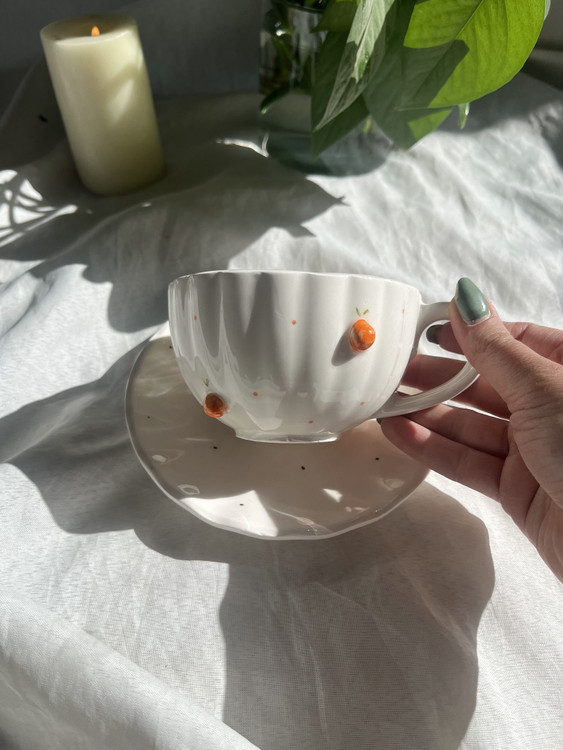 امکان اضافه کردن متن و طرح روی فنجون و نعلبکی و قابل سفارش در هر رنگ و طرح و میوه ای