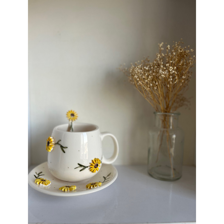 ست تک نفره آفتابگردون سرامیکی و دستساز